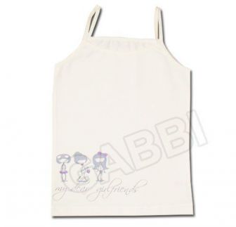 Майка для девочки "Девочки" Габби (00250), расцветка в ассортименте. Стрейч-кулир — эластичное полотно с лайкрой, очень устойчивое к деформации, после растяжения приобретает прежнюю форму, используется для летнего облегающего ассортимента и белья различных расцветок. Данная модель майки идет на тонких брительках с рисунком. Расцветка: розовая, белая, молочная, персиковая.