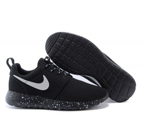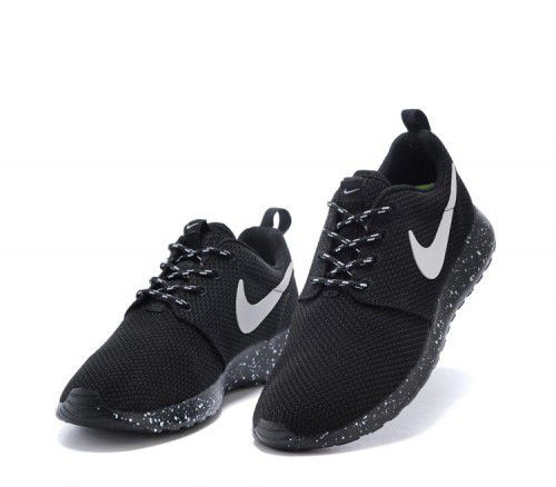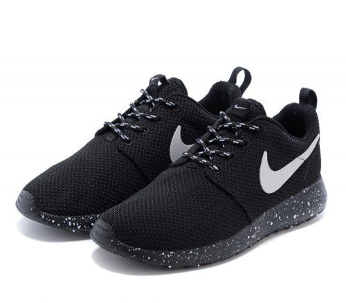 Женские кроссовки Nike Roshe Run черные космос. Верхняя часть кроссовок Roshe Run покрыта специальной сеткой из неопрена, за счет чего обеспечивается отличная вентиляция и легкий вес. Цельносоставная подошва с филоновыми вставками создает хорошую устойчивость. Также подошва имеет особую конструкцию без промежуточного звена с верхней частью. Получившийся обтекаемый дизайн дарит комфорт и создает запоминающийся внешний вид. Мягкая обертка в зоне лодыжки увеличивает комфорт при длительной носке. А специальная «вафельная» подошва обеспечивает уверенное сцепление.